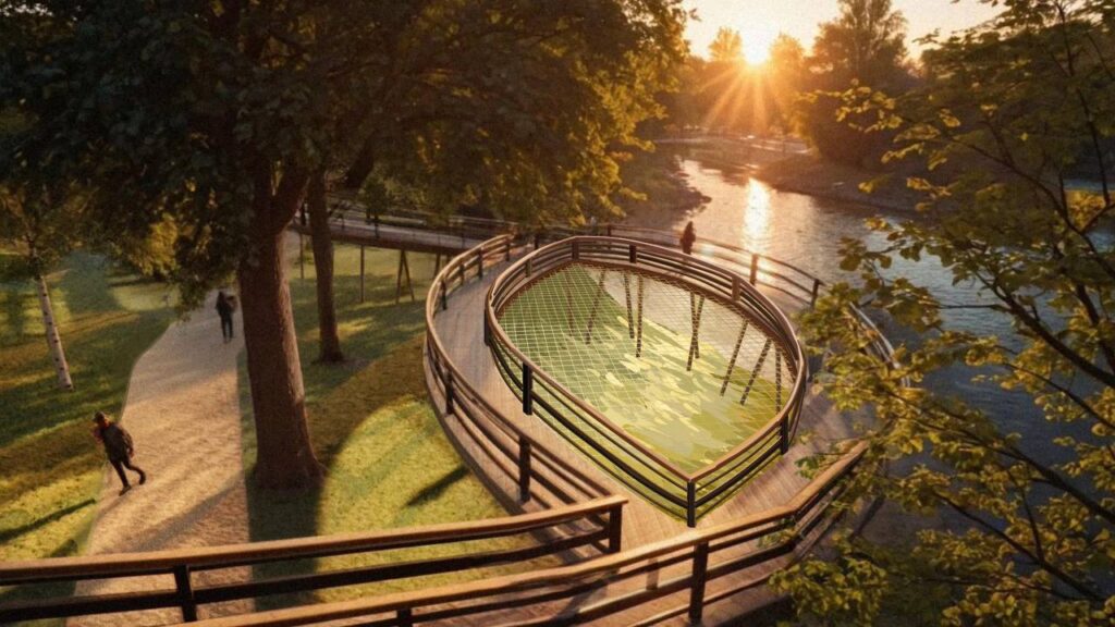В этой локации появится новый пешеходный мост, смотровая площадка, теневой навес, будут установлены пирсы и создан сад фитонцидов. Особое внимание будет уделяться безопасности, в том числе установке системы видеонаблюдения.