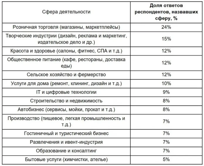 Наиболее популярной сферой для открытия собственного бизнеса россияне называют розничную торговлю. Именно этот сегмент выбрали 24% респондентов. Немало голосов отдано также творческим индустриям: производство контента, дизайн, реклама, маркетинг и издательская деятельность интересуют 15% будущих предпринимателей. В топ-5 направлений для старта бизнеса входят салоны красоты, индустрия здоровья, общественное питание (кафе и рестораны) и сельское хозяйство — по 12% опрошенных выбрали каждый из этих вариантов. Такой разброс направлений отражает не только многообразие интересов, но и ощущение уверенности, что в России сегодня можно реализоваться в самых разных сферах.